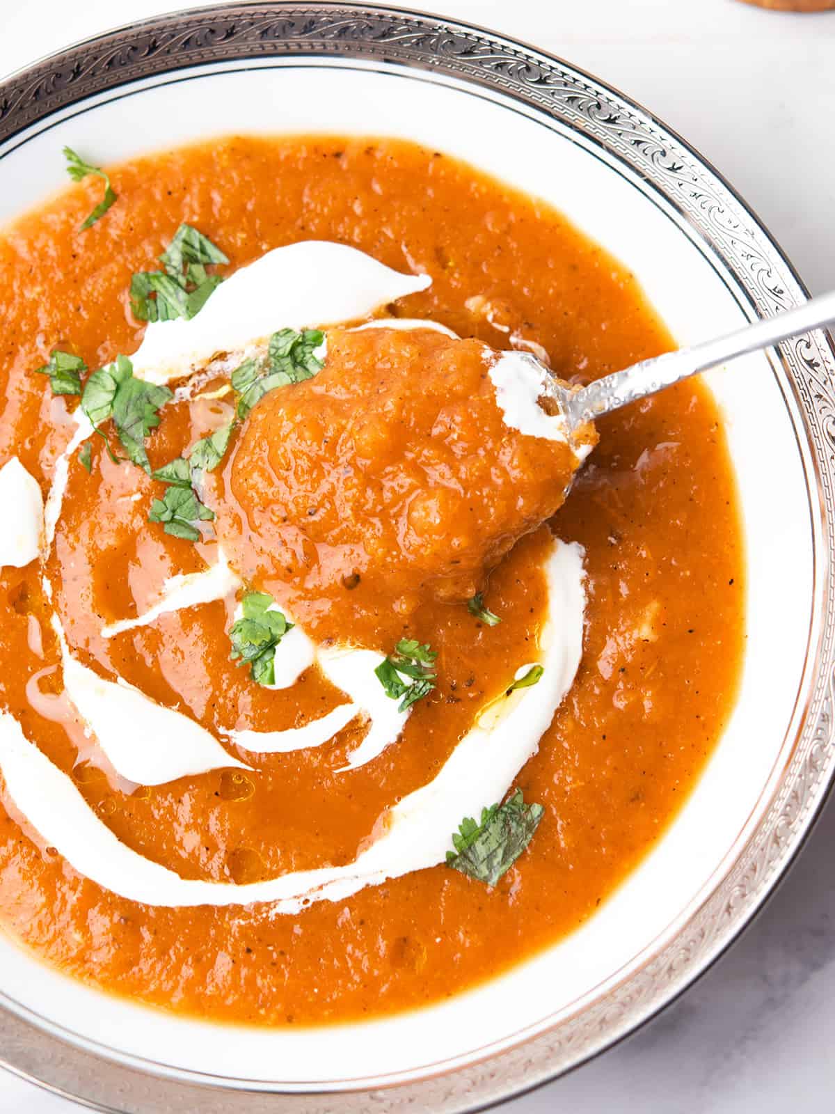 I've made this roasted red pepper and tomato soup and tried many variations(like this Red Pepper Gouda Soup). And this recipe always remains one of our favorites(more at spicy soup recipes), especially on busy days when I need to get dinner on the table quickly.