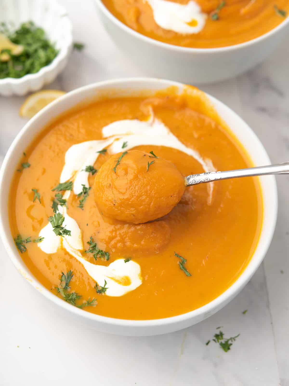 This plant-based, comforting sweet potato and carrot soup recipe turned out to be the best, thanks to the ground ginger and cumin for infusing the warmth.